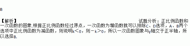 在同一坐标系中,正比例函数y=kx与一次函数y=x-k的图象为( )