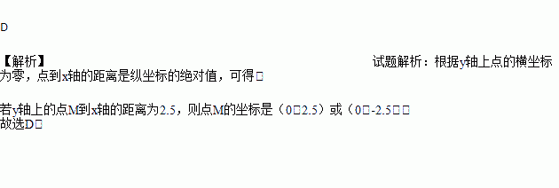若y轴上的点M到x轴的距离为2.5,则点M的坐标为( )