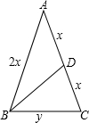 设等腰三角形的腰长AB=AC=2x,BC=y,