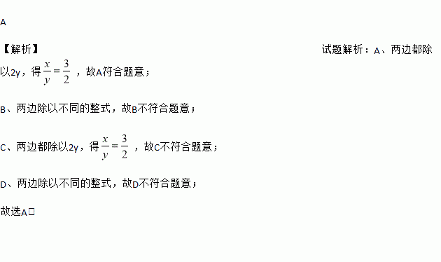 (2017甘肃省兰州市)已知2x=3y(y≠0),则下面结论成立的是( )