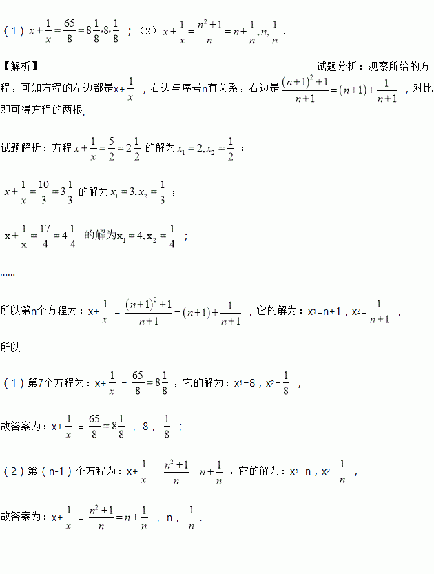 (2)请写出第(n-1)个方程:____________,它的解为x1=____________, x2=____________.