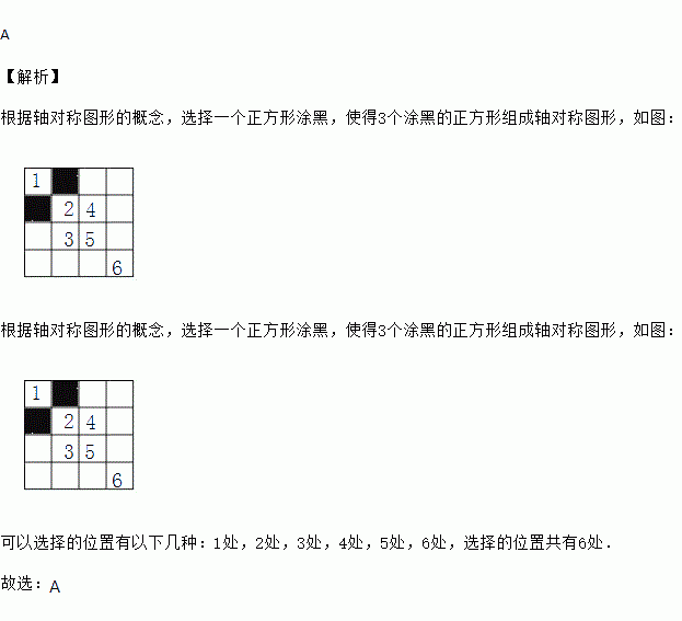 如图所示的方格纸,已有两个小正方形被涂黑,再将图中其余小正方形涂黑一个,使整个被涂黑的图案构成一个轴对称图形,那么涂法共有( )种.