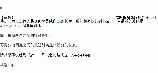 如图,小华的家在A处,书店在B处,星期日小明到书店去买书,他想尽快的赶到书店,请你帮助他选择一条最近的路线( ).