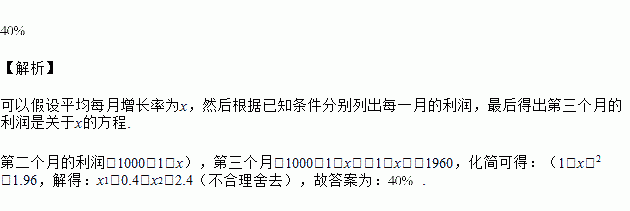 小军同学家开了一个商店,今年一月份的利润是元,月份的利润是元,请你帮助小军算一算,他家这个商店这两个月的利润的平均每月增长率是________.