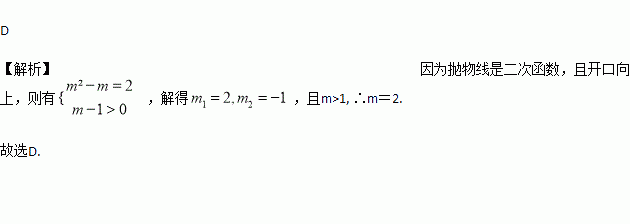 已知抛物线y=(m-1)xm2-m的开口向上,则m的值为( )