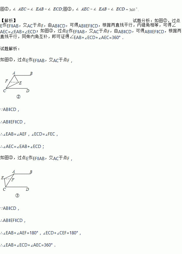 如图,已知AB ,在AB,CD之间取一点E,连接EA,EC,试探索![]()