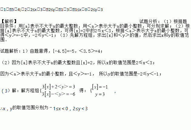 我们用[a]表示不大于a的最大整数,例如:[2.5]=2,[3]=3,[﹣2.5]=﹣3;用<a>表示大于a的最小整数,例如:<2.5>=3,<4>=5,<﹣1.5>=﹣1.解决下列问题:
