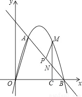 (3)点P是线段AB上一动点,(点P不与点A、B重合),过点P作PM∥OA,交第一象限内的抛物线于点M,过点M作MC⊥x轴于点C,交AB于点N,若△BCN、△PMN的面积S△BCN、S△PMN满足S△BCN=2S△PMN,求出的值,并求出此时点M的坐标.