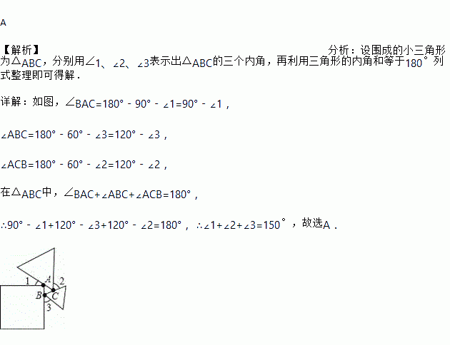 一个正方形和两个等边三角形的位置如图所示,则∠1+∠2+∠3的度数为( )