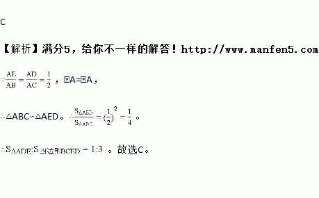 如图,在△ABC中,点D,E分别在边AB,AC上,且,则的值为