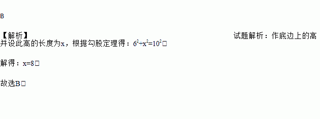 等腰三角形的腰长为10,底长为12,则其底边上的高为( )