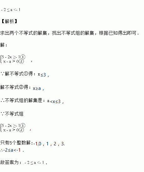 已知关于x的不等式组有5个整数解,则a的取值范围是______.