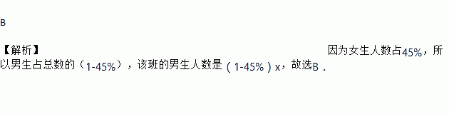 某班共有x个学生,其中女生人数占45%,那么男生人数是 .
