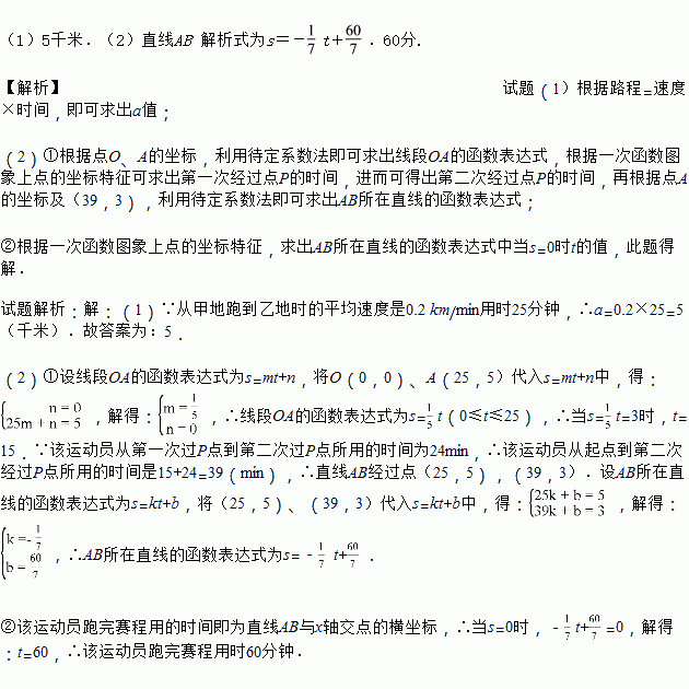 ijÊоÙÐС°ÃÔÄãÂíÀËÉ¡±³¤ÅܱÈÈü£¬Ô˶¯Ô±´ÓÆðµã¼×µØ³ö·¢£¬Åܵ½Òҵغó£¬ÑØÔ·ÏßÔÙÅܻصã¼×µØ£®Éè¸ÃÔ˶¯Ô±À뿪Æðµã¼×µØµÄ·³Ìs(km)ÓëÅܲ½Ê±¼ät(min)Ö®¼äµÄº¯Êý¹ØÏµÈçͼËùʾ£®ÒÑÖª¸ÃÔ˶¯Ô±´Ó¼×µØÅܵ½ÒÒµØÊ±µÄƽ¾ùËÙ¶ÈÊÇ0.2 km/min£¬¸ù¾ÝͼÏñÌṩµÄÐÅÏ¢£¬½â´ðÏÂÁÐÎÊÌ⣺