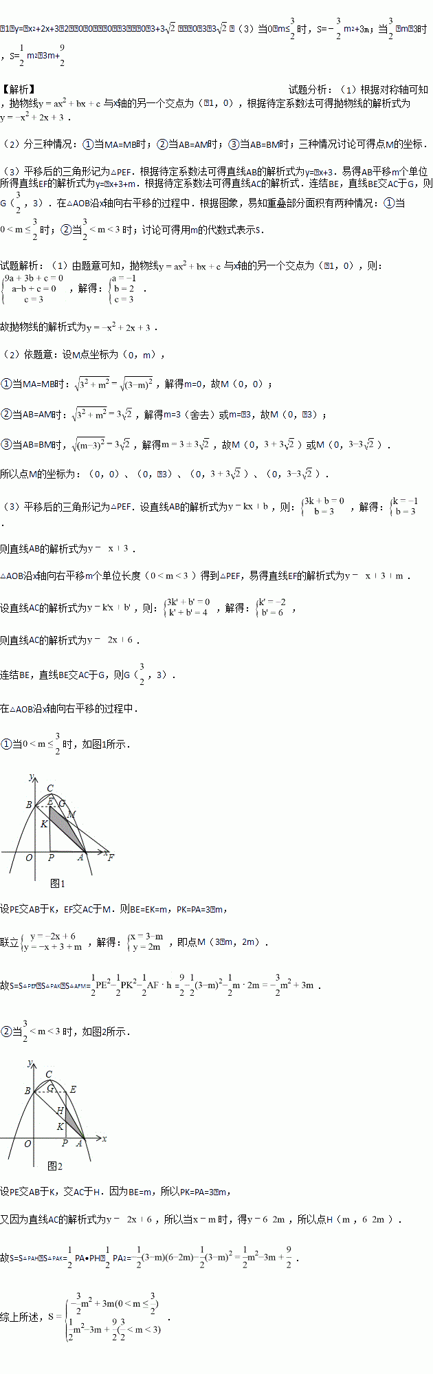 (3)将△AOB沿x轴向右平移m个单位长度(0<m<3)得到另一个三角形,将所得的三角形与△ABC重叠部分的面积记为S,用m的代数式表示S,并求其最大值.