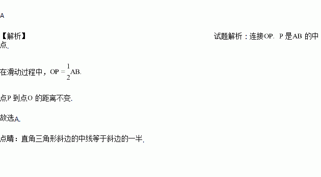 如图,一根木棍斜靠在与地面OM垂直的墙面ON上,设木棍重点为P,若木棍A端沿墙下滑,且B沿地面向右滑行.在此滑动过程中,点P到点O的距离( )