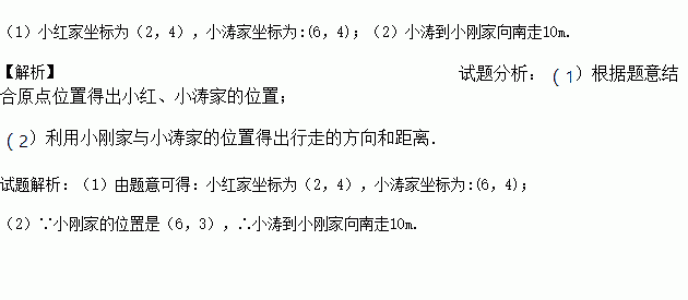 (2)小刚家的位置是(6,3),则小涛到小刚家怎么走?