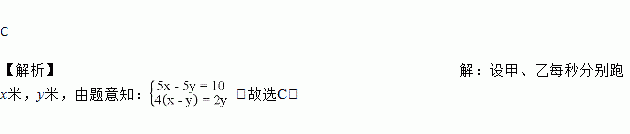 甲、乙两人练习跑步,如果让乙先跑10米,甲跑5秒就追上乙;如果让乙先跑2秒,那么甲跑4秒就追上乙,若设甲、乙每秒分别跑x米,y米,下列方程组正确的是( )