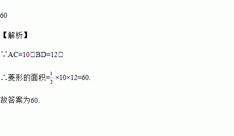 如图,菱形ABCD中,对角线AC、BD相交于点O,AC=10,BD=12,则这个菱形面积为______ .