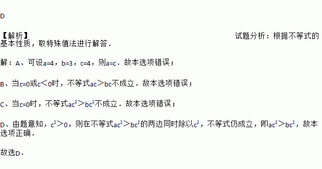 C. 若a>b,则ac2>bc2 D. 若ac2>bc2,则a>b
