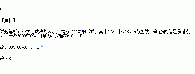 A.39.3×104 B.3.93×105 C.3.93×106 D.0.393×106