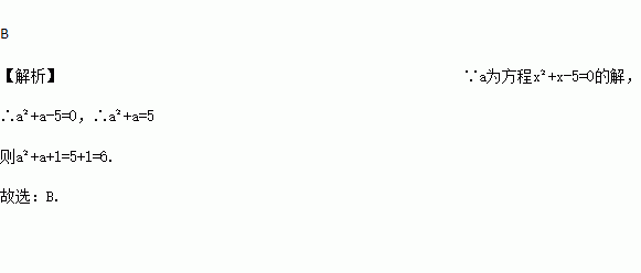 若a为方程x2+x-5=0的解,则a2+a+1的值为( )