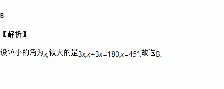 若平行四边形中两个内角的度数比为1:3,则其中较小的内角是( )