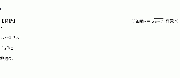 C 【解析】∵函数y=有意义, ∴x-2≥0, ∴x≥2; 故选C。
