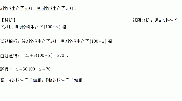 两种饮料100瓶,恰好共需要该添加剂270克,那么A、B两种饮料各生产了多少瓶?