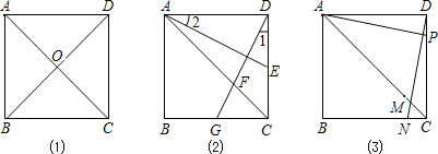 (1)如图(1),在正方形ABCD中,对角线AC、BD相交于点O,易知AC⊥BD,