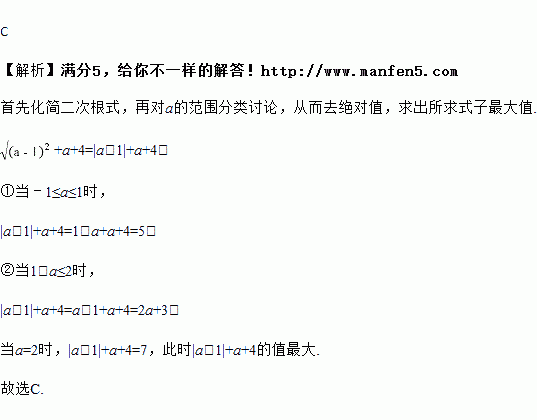 A. 5 B. a+1 C. 7 D. a+4