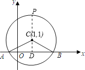 如图,在平面直角坐标系中,以点C(1,1)为圆心,2为半径作圆,交x轴于A,B两点.