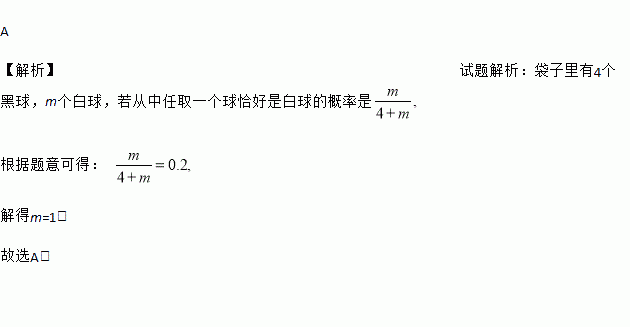 袋子里有4个黑球,m个白球,它们除颜色外都相同,经过大量实验,从中任取一个球恰好是白球的频率是0.20,则m的值是( )