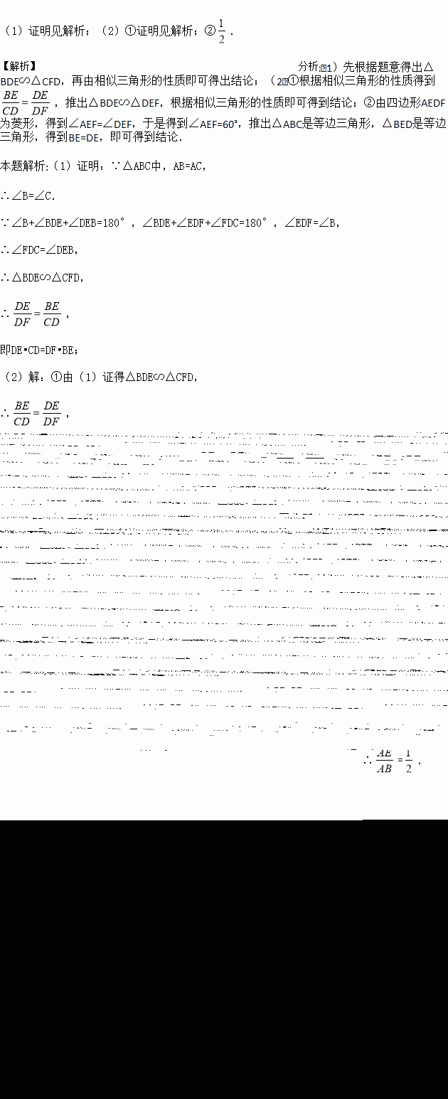 △ABC中,AB=AC,点D、E、F分别在BC、AB、AC上,∠EDF=∠B.