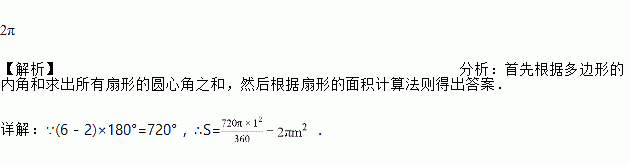 如图,一块六边形绿化园地,六个角处都建有半径为1m的圆形喷水池,则这六个喷水池占去的绿化园地的面积(图中阴影部分)为________m2(结果保留)