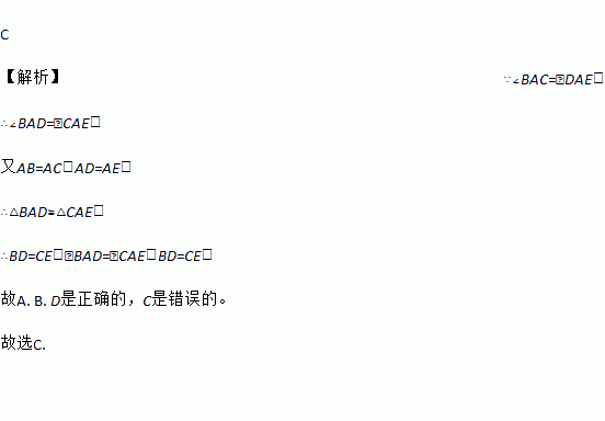 如图,已知AB=AC,AD=AE,∠BAC=∠DAE.下列结论不正确的是( )