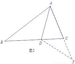 如图2,延长AC到E,使CE=CD,连接DE,由AB=AC+CD,可得AE=AB,又因为AD是∠BAC的平分线,可得△ABD≌△AED,进一步分析就可以得到∠ACB 与∠ABC的数量关系.