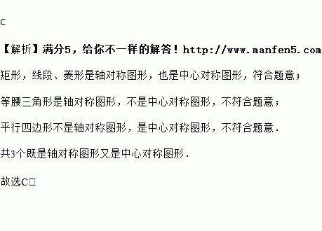 有以下图形:平行四边形、矩形、等腰三角形、线段、菱形,其中既是轴对称图形又是中心对称图形的有( )