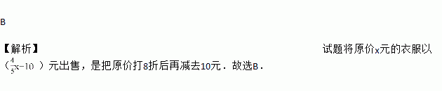 A. 原价减去10元后再打8折 B. 原价打8折后再减去10元