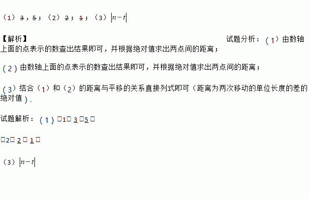 £¨1£© 3 £¬5 £»£¨2£© 2 £» 1 £»£¨3£© ¡¾½âÎö¡¿ÊÔÌâ·ÖÎö£º£¨1£©ÓÉÊýÖáÉÏÃæµÄµã±íʾµÄÊý²é³ö½á¹û¼´¿É£¬²¢¸ù¾Ý¾ø¶ÔÖµÇó³öÁ½µã¼äµÄ¾àÀ룻 £¨2£©ÓÉÊýÖáÉÏÃæµÄµã±íʾµÄÊý²é³ö½á¹û¼´¿É£¬²¢¸ù¾Ý¾ø¶ÔÖµÇó³öÁ½µã¼äµÄ¾àÀ룻 £¨3£©½áºÏ£¨1£©ºÍ£¨2£©µÄ¾àÀëÓëÆ½ÒÆµÄ¹ØÏµÖ±½ÓÁÐʽ¼´¿É£¨¾àÀëΪÁ½´ÎÒÆ¶¯µÄµ¥Î»³¤¶ÈµÄ²îµÄ¾ø¶ÔÖµ£©. ÊÔÌâ½âÎö£º£¨1£©£¨1£© 3 £¬5 £» £¨2£© 2 £» 1...