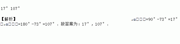 已知∠α=73°,则∠α的余角是____________,∠α的补角是________________.