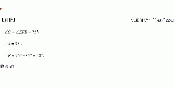 如图,AB∥CD,∠A=35°,∠C=75°,则∠E的度数为( )