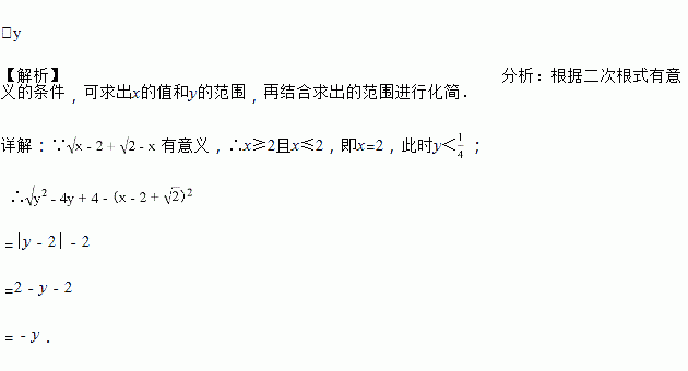 已知x,y是实数,且满足y<++,化简:-(x-2+)2.