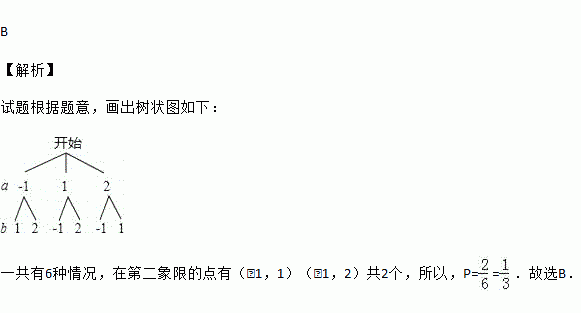有三张正面分别写有数字-1,1,2的卡片,它们背面完全相同,现将这三张卡片背面朝上洗匀后随机抽取一张,以其正面数字作为a的值,然后再从剩余的两张卡片随机抽一张,以其正面的数字作为b的值,则点(a,b)在第二象限的概率为
