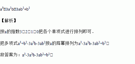将多项式a3+b2﹣3a2b﹣3ab2按a的降幂排列为:_____.