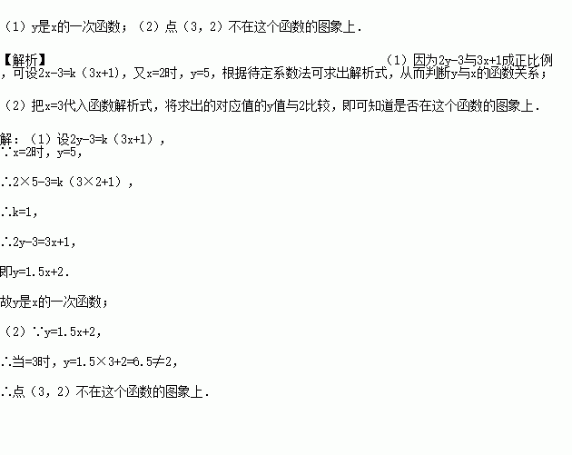 已知2y-3与3x+1成正比例,且x=2时y=5
