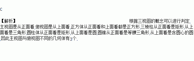 如图所示的四个几何体中,它们各自的主视图与俯视图不相同的几何体的个数是( )