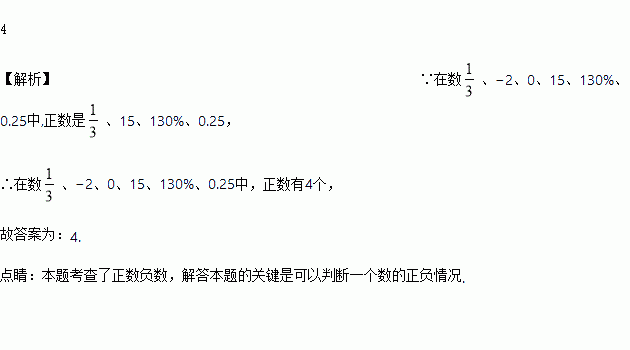.在数、﹣2、0、15、130%、0.25中,正数有______个.