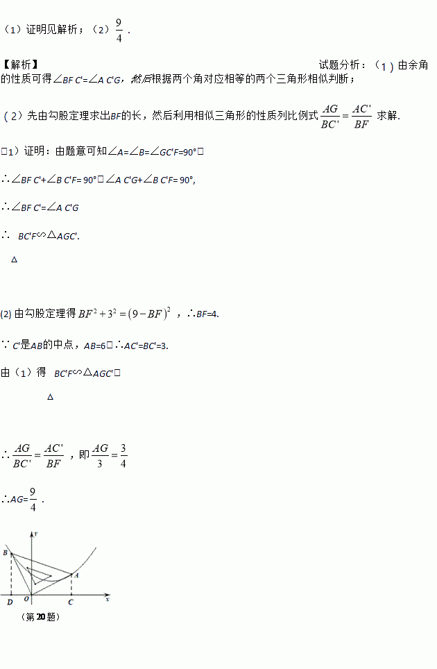 (1)求证:△BC'F∽△AGC';