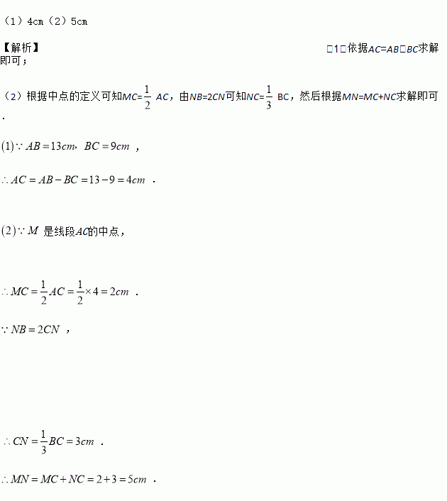 (2)在线段CB上取一点N,使得,求线段MN的长.